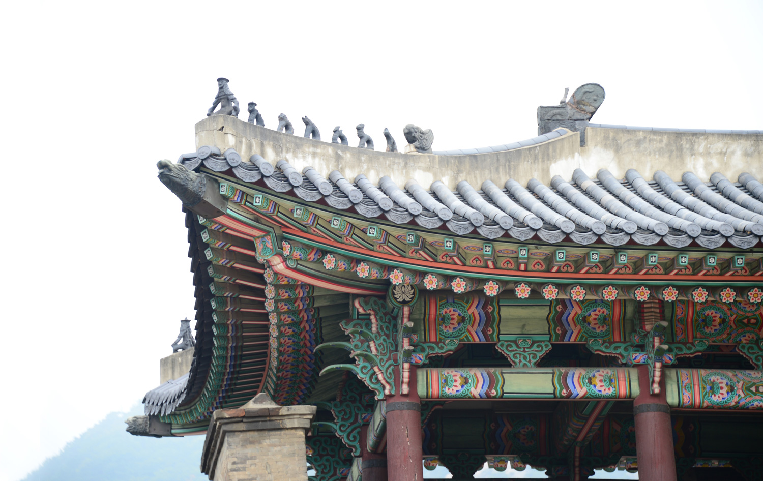 Kết cấu tương tự kiểu “chồng rường” trong kiến trúc Việt cổ, trang trí Dancheong, tạo vẻ đẹp thực sự ấn tượng ở điện thờ Gyeonggijeon.