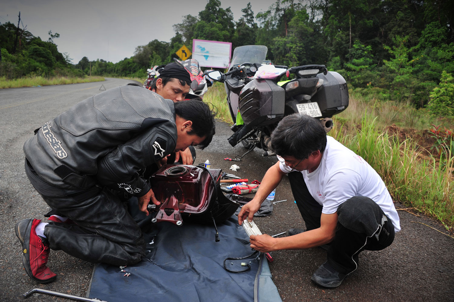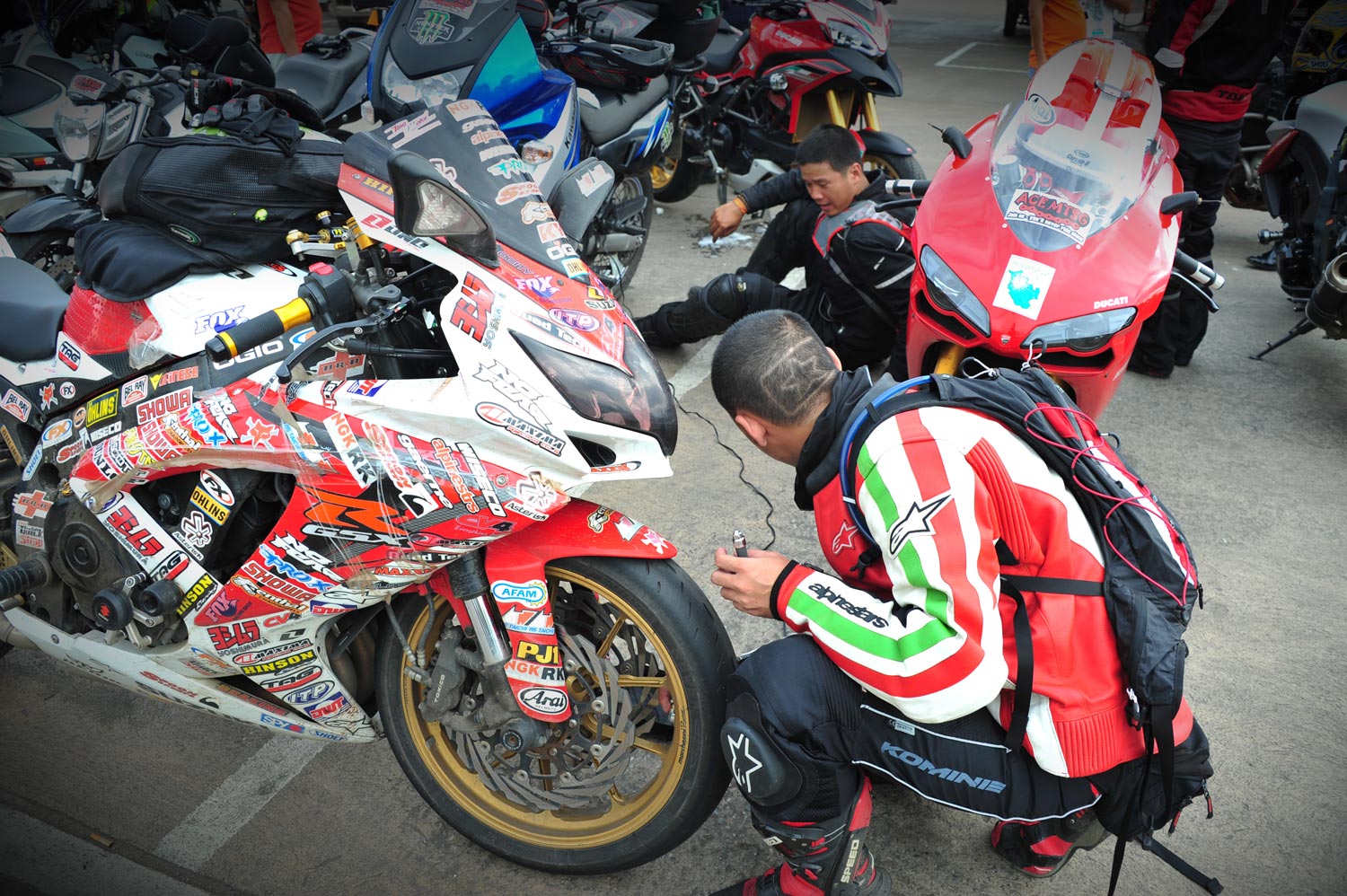 Các tay lái Big Bike Việt Nam kiểm tra kỹ thuật trước giờ lên đường.
