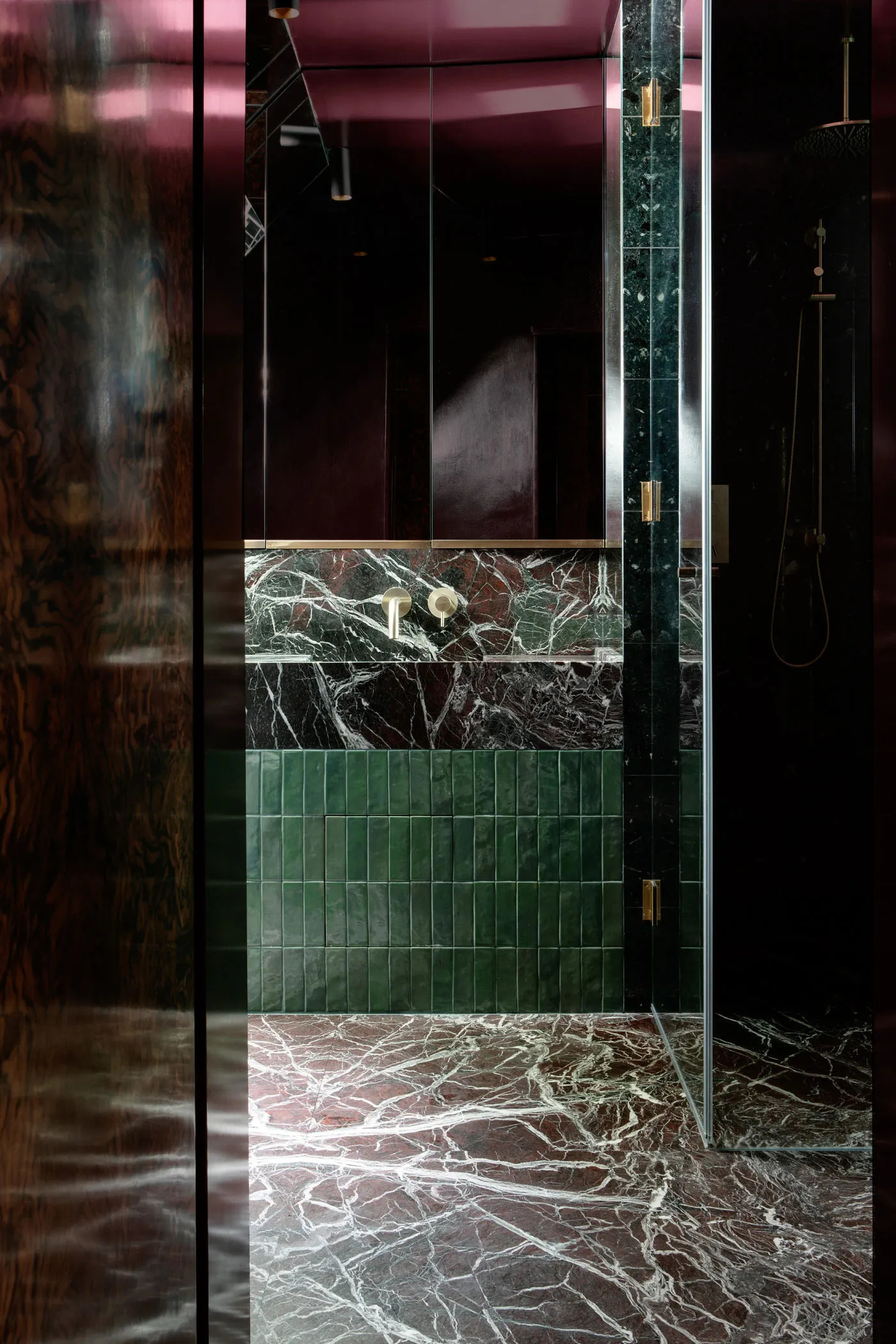 Phòng tắm ốp đá cẩm thạch Verde Alpi.