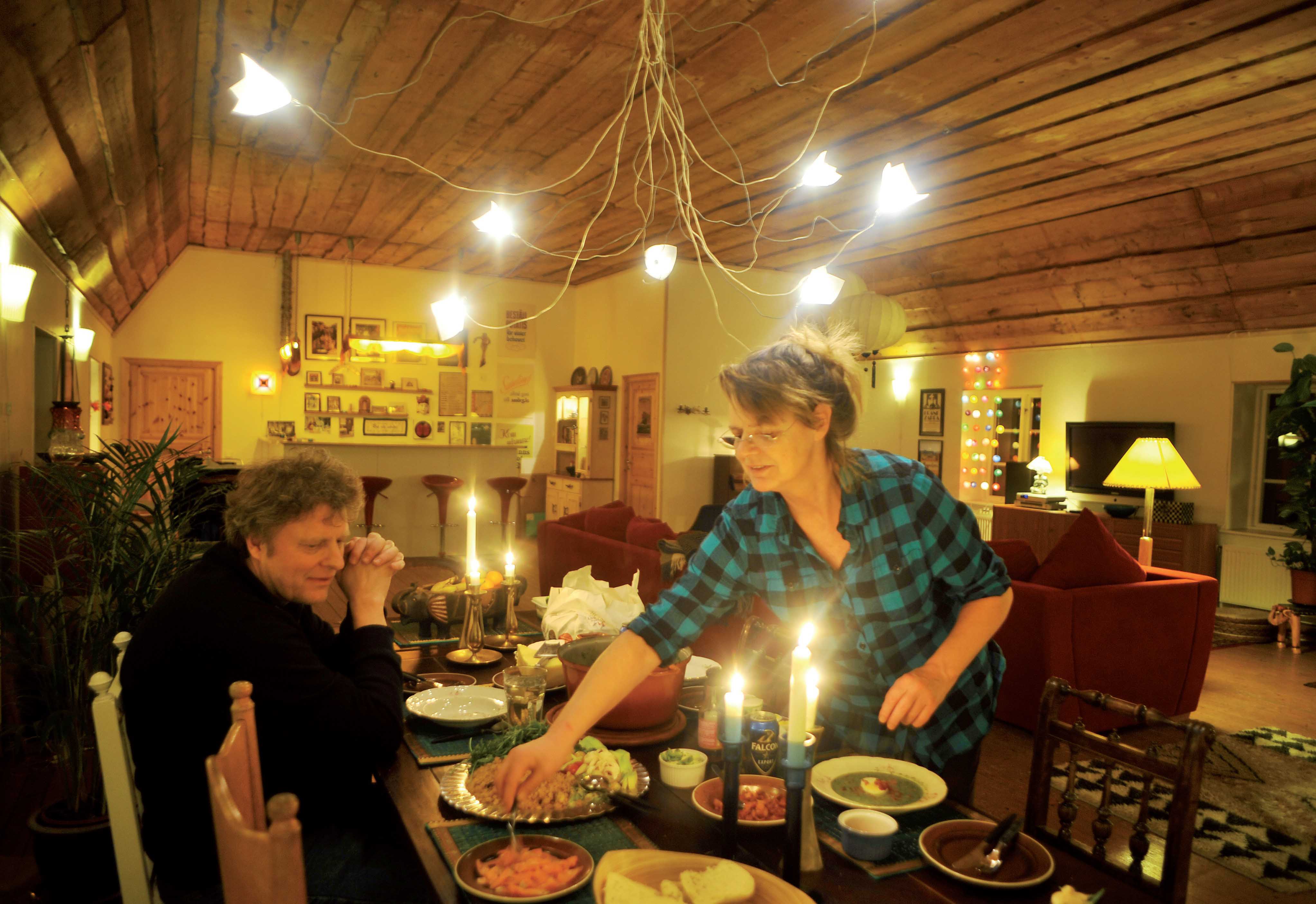 Nằm ven đường làng Tomelilla, ngôi nhà Bắc Âu hai mái dốc bề ngoài với chi tiết ấn tượng duy nhất là chiều dài ước tính hơn 30m, ngang 15m trong đó chiếm hầu hết diện tích là phòng khách, nơi sinh hoạt chung của gia đình chỉ gồm hai vợ chồng nghệ sĩ nhạc đồng quê Toby và Eva. Ở xứ Bắc Âu này, dân quê mới là những người giàu, và ngôi nhà chính là nơi họ thể hiện cá tính thông qua sắp đặt, trưng bày đồ trang trí nội thất mang đậm âm hưởng phong cách Bắc Âu đương đại.