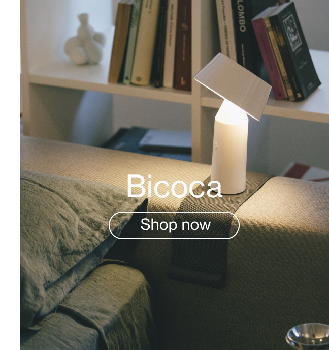 Bicoca nhẹ nhờ được làm từ polycarbonate với hình dáng là một tổng thể xếp chồng của những khuôn hình học cơ bản. Hơn thế nữa, nó được xem là chiếc đèn đọc sách hoàn hảo bởi thứ ánh áng ấp áp nhưng đủ tỏ tường và chụp đèn có thể bẻ nghiêng nhằm điều chỉnh hướng rọi sáng.
