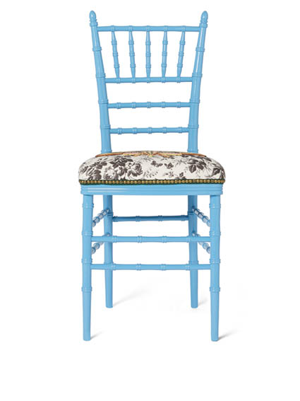 Người ta bắt đầu gửi cho nhau thông tin được instagram chính thức của Gucci hé mở về hình ảnh chiếc ghế Chiavari có kiểu dáng cổ điển trong màu đỏ rực rỡ, được hoạ sỹ Alex Merry vẽ trong một bối cảnh siêu thực. Chiếc ghế gỗ có bề mặt sơn mài còn được trang trí bằng phần nệm ngồi bằng nhung với hoạ tiết thêu mặt mèo đặc trưng của nhà Gucci đương đại, sự tỉ mỉ trong quá trình hoàn thành sản phẩm này một lần nữa thể hiện đẳng cấp riêng của nhãn hiệu lâu đời từ Ý này.